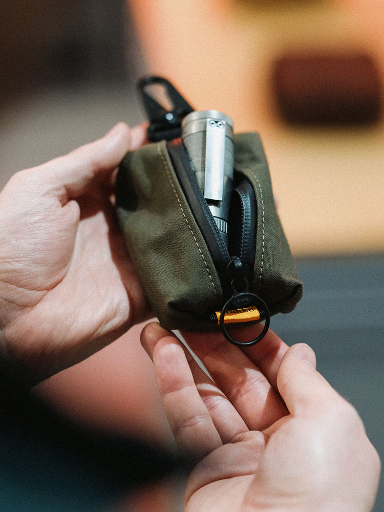 Keep your small items close at hand with our Micro Foulden Pouch, complete with a strong steel hook to clip onto anything.